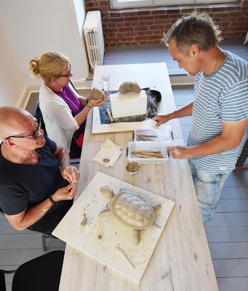 Drei Wochen später, nachdem eure Werkstücke getrocknet und zum ersten Mal gebrannt worden sind, findet der zweite Teil des Workshops statt.